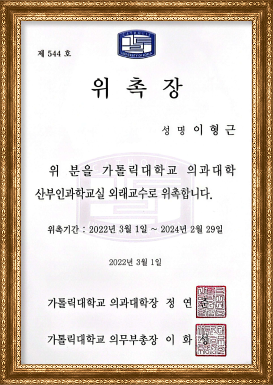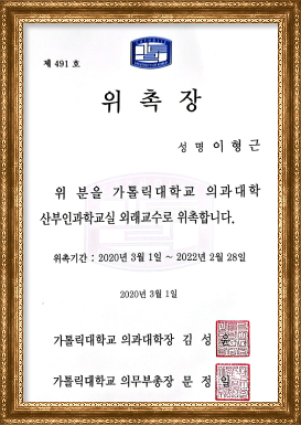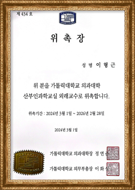 · 가톨릭대학교 의과대학 산부인과교실 전임강사
