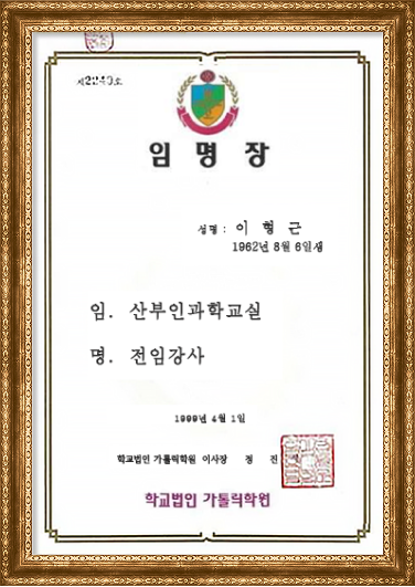 · 가톨릭대학교 의과대학 산부인과교실 조교수 역임
